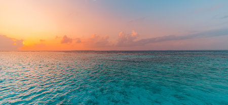 Tranquil stunning sunset over sea and sky horizon with peaceful relaxing nature ocean surface and colorful natural background perfect for scenic travel and serene landscapes