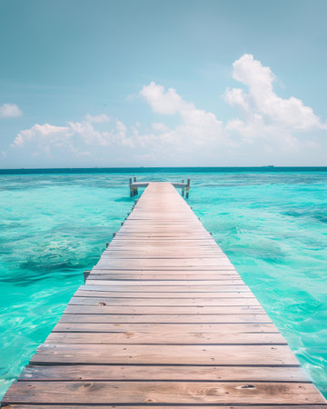 Beach pier with turquoise ocean.