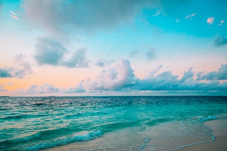 tropical sand beach at sunset