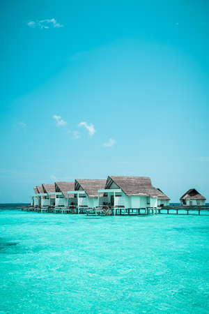 Meeru Island Maldives April 2019. - Amazing tropical Overwater Bungalow Resort on the beach.