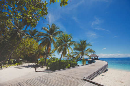 Meeru Island Maldives April 2019. - Amazing tropical Overwater Bungalow Resort on the beach.