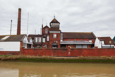 LEWES, ENGLAND - 6 November 2018: Harveys brewery in Lewes town, river, East Sussex, England, UK
