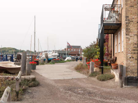 WOODBRIDGE, SUFFOLK, ENGLAND - APRIL 17, 2017: The River Deben at Woodbridge Quay with Tide Mill and Yachts.