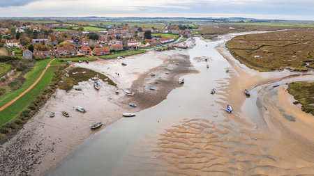 A multi image aerial panorama of Burnham Overy Staithe on the North Norfolk coastline pictured on 6 November 2025.