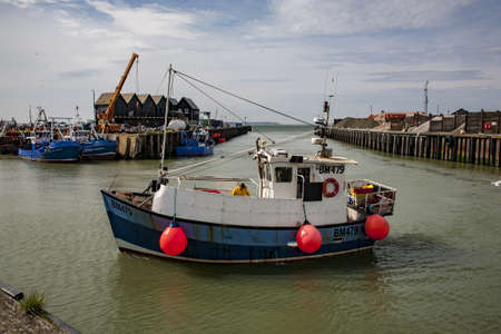 WHITSTABLE, KENT, UK, UNITED KINGDOM - Apr 17, 2013: Fishing boat returning from a trip