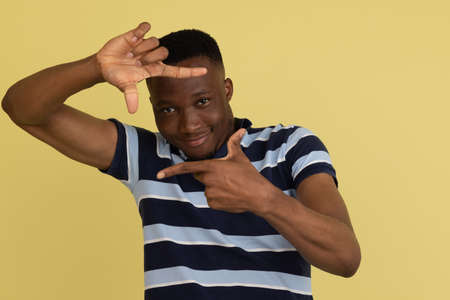 kinky guy in yellow t-shirts gesture hands emotions Lifestyle unaltered
