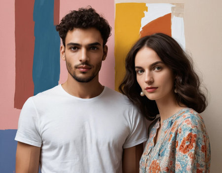Casual Portrait of Young Man and Woman in White Shirts in Studio Setting