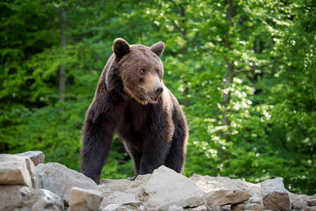 Adult Male of Brown bear in the forest. Scientific name: Ursus arctos. Natural habitat.