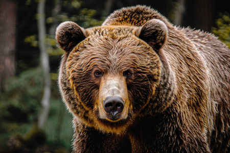 Closeup brown bear (Ursus arctos) portrait in spring forest