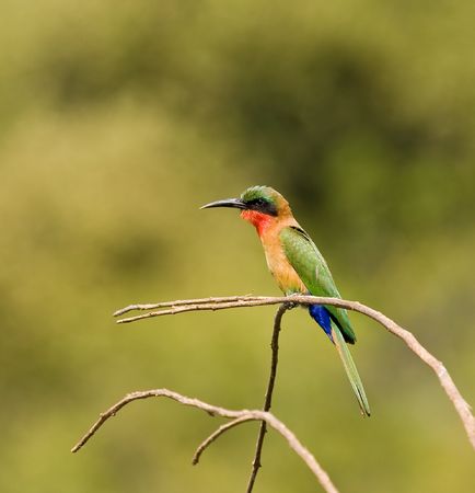Blue-breasted bee-eater sitting on a branch in Lake Langano in Ethiopia