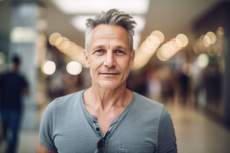 Portrait of handsome mature man in casual clothes looking at camera in shopping mall