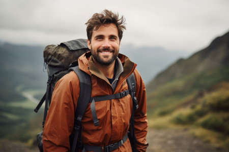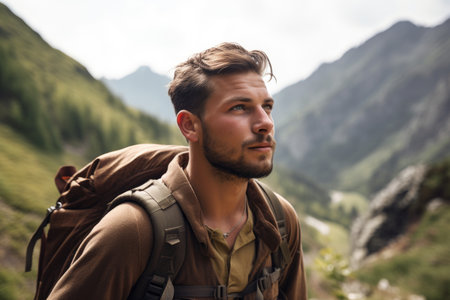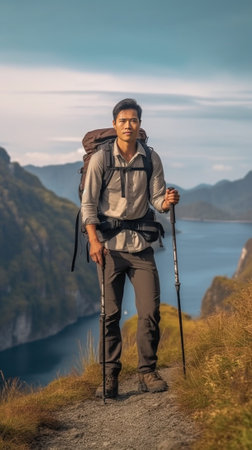 Adventurous Journey: The Confident Young Man on a Hiking Expedition