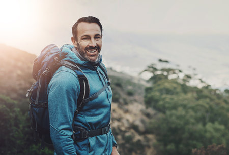 Always be proud of how far youve come. Shot of a middle aged man hiking in the mountains.