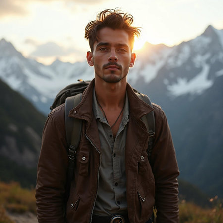 Majestic Mountain Landscape and Rugged Man