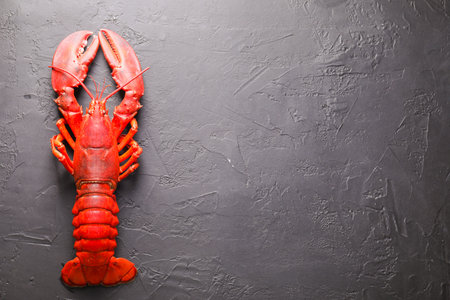 Red black lobster with claws on dark grey background