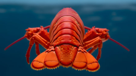 Vibrant lobster display on blue background capturing seafood elegance