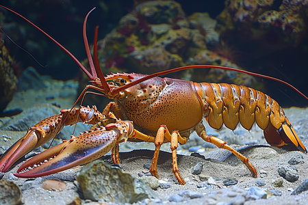 Lobster crawling on seabed.