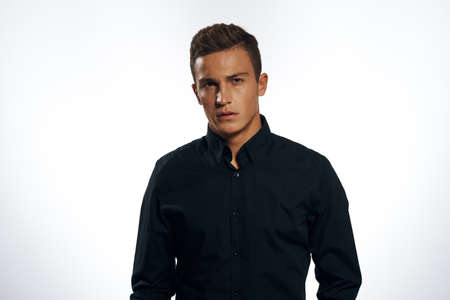 Portrait of a handsome guy in a shirt on a light background close-up portrait