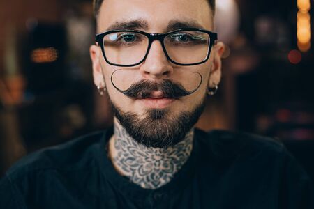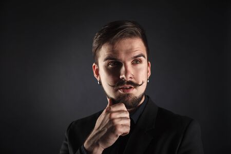 Portrait of a handsome young man with mustache. Men's beauty, fashion.