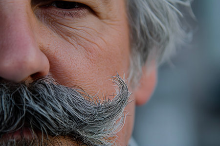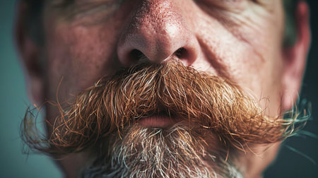 A detailed close-up of a man with a stylish mustache, highlighting the intricate details of facial hair.