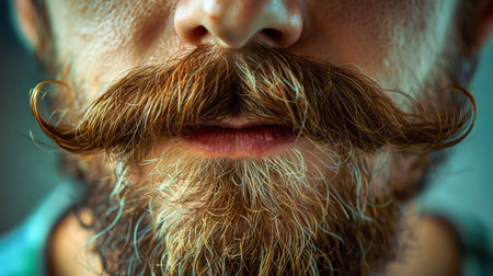Close-Up of Thick Curled Mustache on Mans Face with Detailed Hair Texture. High quality photo