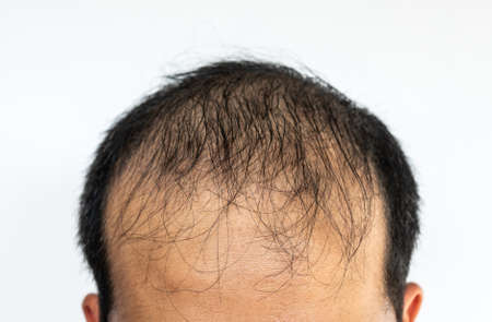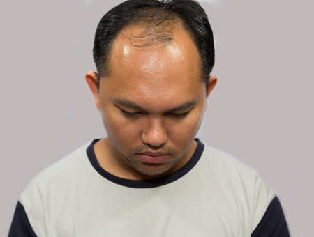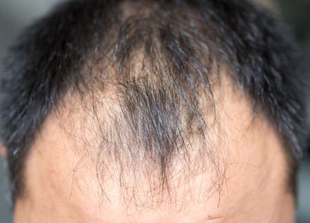 Close up of Asian male pattern baldness. Hair loss (alopecia) can affect just your scalp or your entire body. It can be the result of heredity, hormonal changes or a normal part of aging.
