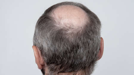 Close up of a bald man's head with hair loss problem.