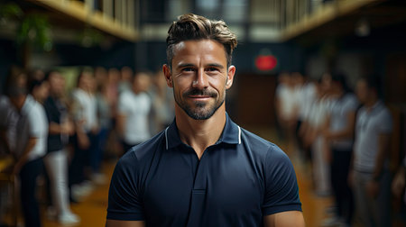Engaging close-up portrait of a young Dutch male teacher in an interactive classroom setting