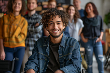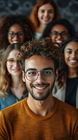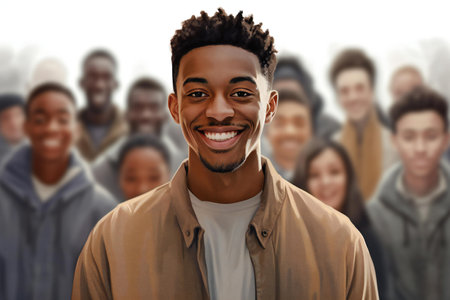 A captivating image showcasing a group of diverse young adults standing together, representing a mix of different ethnic backgrounds, emphasizing unity and modern diversity.