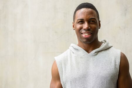Face of happy young African man smiling ready for gym