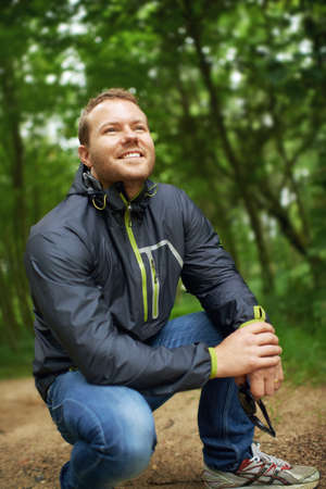 Taking time to admire the scenery. A young man looking at the nature around him.