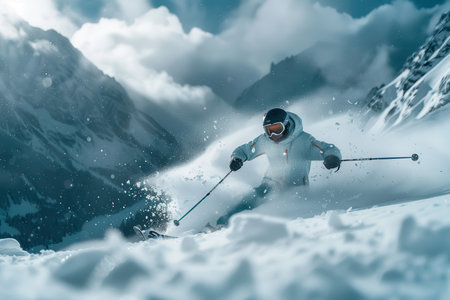 Adventurous Skier in Action Extreme Winter Sports Generative AI