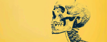 Profile of a human skull, for medical or spooky designs. High detail focus on bone anatomy
