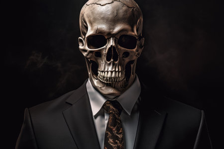 A surreal depiction of a skull surrounded by swirling smoke, blending life and death themes.