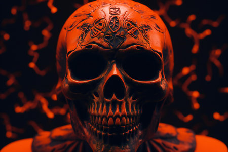 AI Generated. A colorful skull banner hangs on a wooden wall