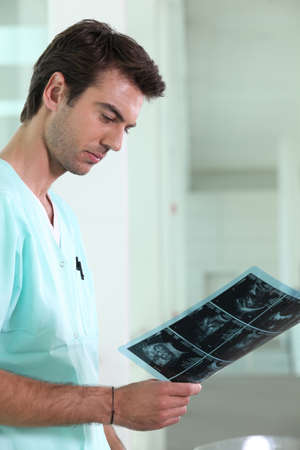 Male nurse examining x-ray image