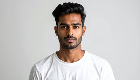 Portrait of a young Indian man in a white t-shirt