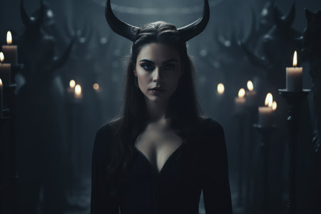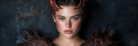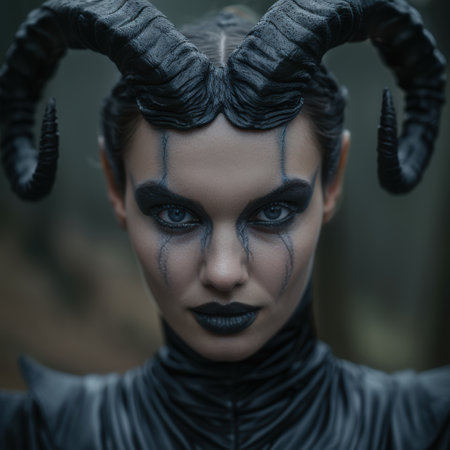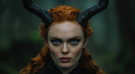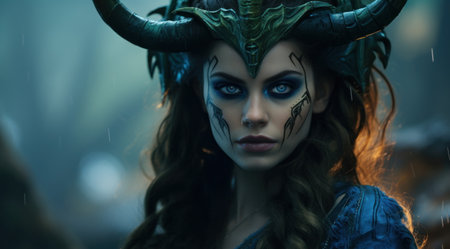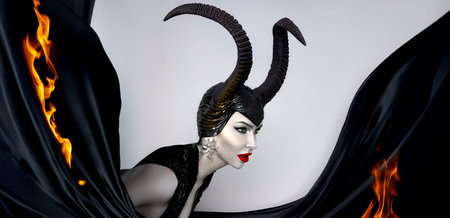 Evil woman with makeup zodiac signs of Capricorn or Aries or Taurus. Girl with horns on head evil