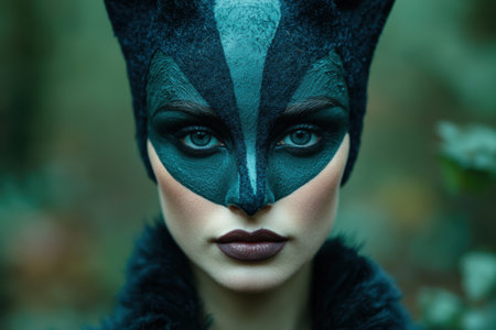 Mysterious blue-toned portrait of a person with dramatic makeup and lighting