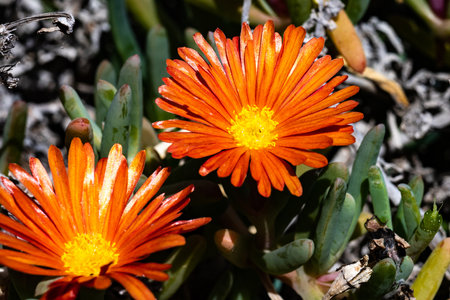 Close up of beautiful orange trailing ice plant blossoms