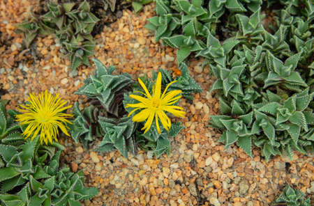 Flowering succulent plant in the garden, close-up