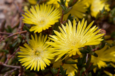 Flowers of the yellow ice plant (Carpobrotus edulis)