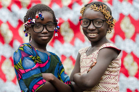 Young african girls with traditional accessories in hair looking at camera