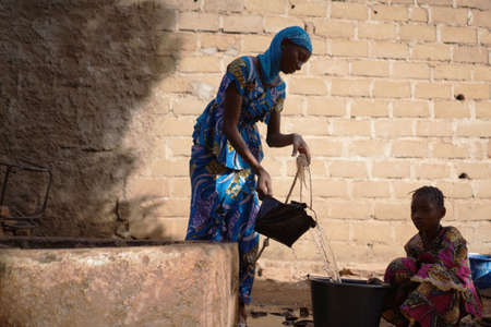Pouring Water into Bucket as a African Poverty Symbol