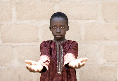 African Black Boy Showing Palm Hands in Sadness and Despair Symbol