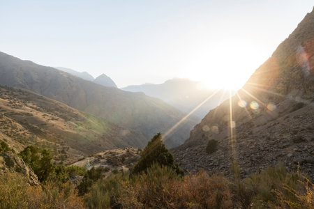 Beautiful sunset mountain view in Fann mountains in Tajikistan