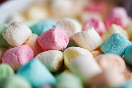 Small pieces of colored marshmallow close-up. Macro with shallow depth of field.