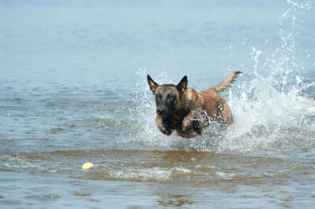 Belgian Shepherd Dog running in the park. Selective focus on the dog