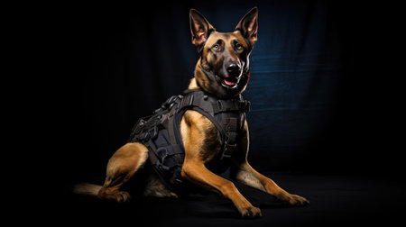 dedication of a police dog equipped with a bulletproof vest. An impactful image portraying the canine's commitment to law enforcement and public safety