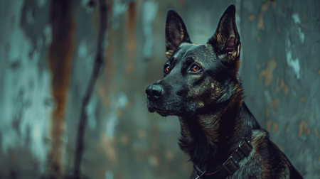 Portrait of a German Shepherd Dog with an Intelligent Gaze in a Minimalist Setting for Stock Use